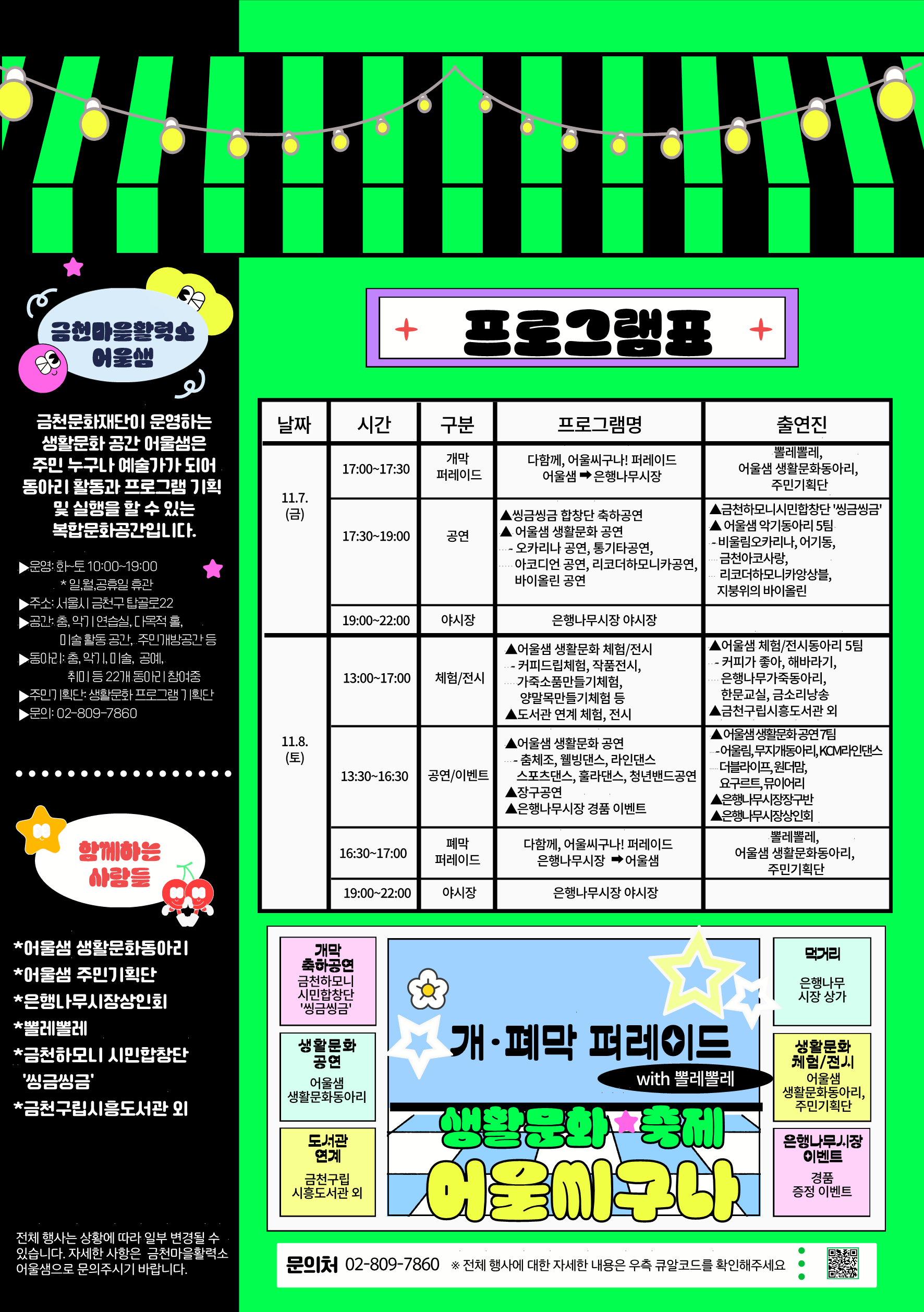 ▶문의: 02-809-7860 금천마을활력소 어울샘