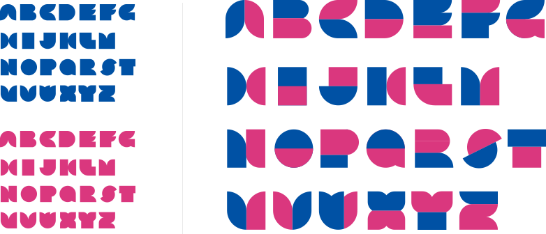 금천문화재단의 이미지와 더불어 독창적이고 차별화된 브랜드 아이덴티티를 확립함과 동시에 대상에게 효과적으로 전달되기 위해 기존의 영어 알파벳을 새롭게 디자인한 요소입니다. 그래픽 모티브(폰트)는 적용될 콘텐츠와 매체의 특성에 따라 다양하게 적용될 수 있습니다.