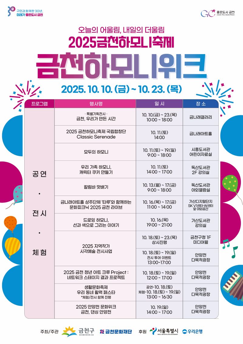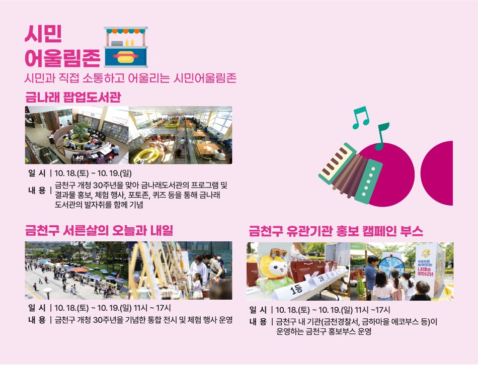 3. 축제의 본 행사 <2025 금천하모니축제> : 10. 18. ~ 10. 19.