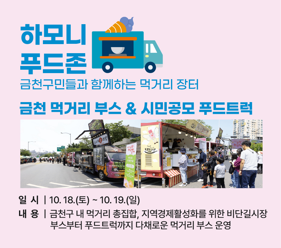 금천구 내 먹거리의 총집합, 지역경제 활성화를 위한 비단길 시장부스부터 금천구 소재지의 푸드트럭까지!!