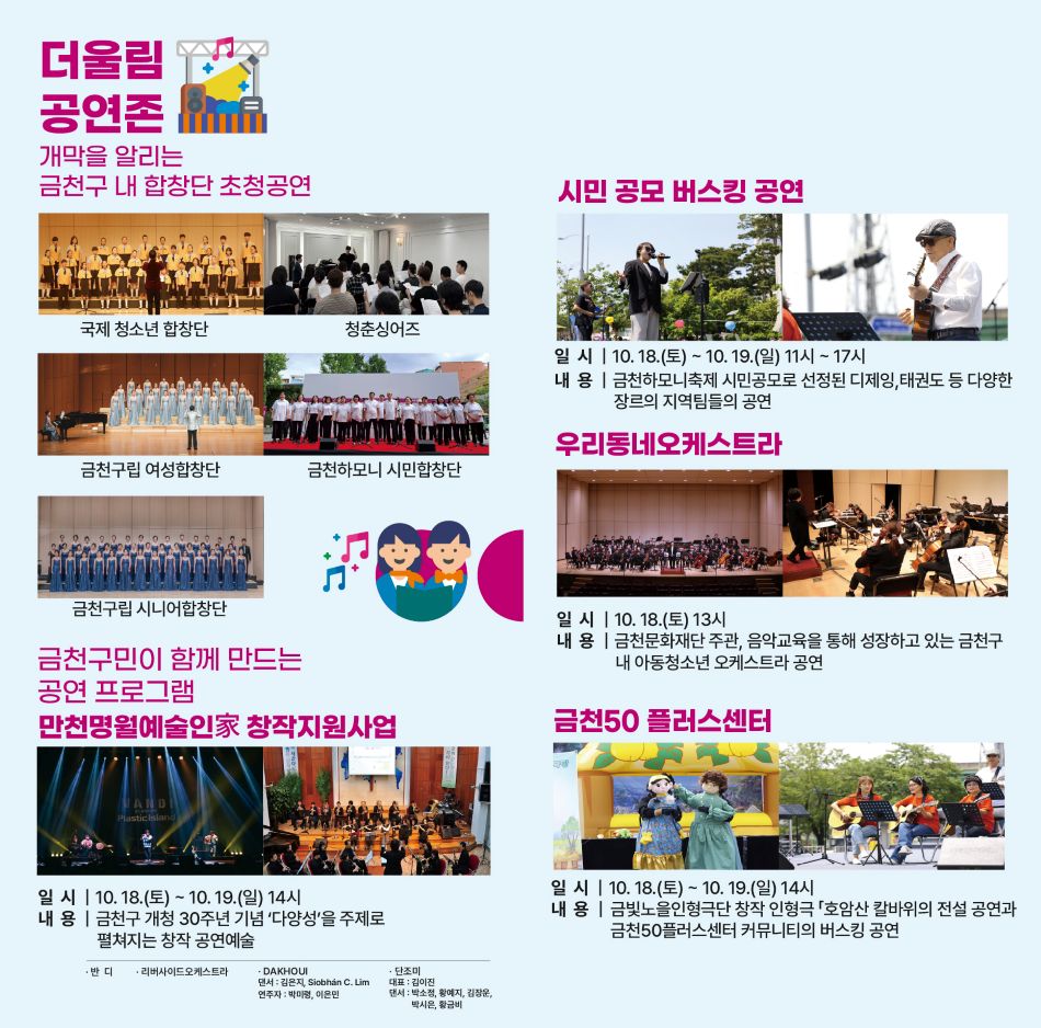 금천구 내 합창단 초청공연부터 금천구민이 함께만드는 공연프로그램까지